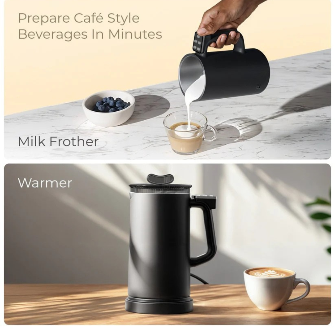 This beverage maker is a sleek 2-in-1 Coffee Maker & Milk Frother.