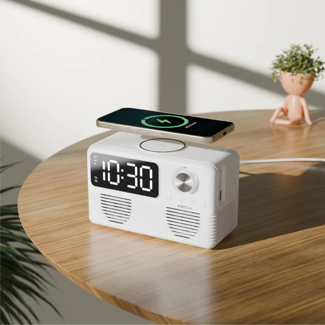 The Retro Fusion Station combines vintage charm with modern functionality featuring a Bluetooth speaker, wireless charger, and digital clock. A stylish all-in-one accessory to start the New Year with rhythm, convenience, and timeless design.